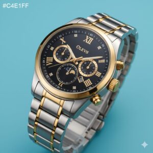 Binbond Men’s Luxury Blue Dial Watch – Stainless Steel Quartz Wristwatch with Date & Day Display
